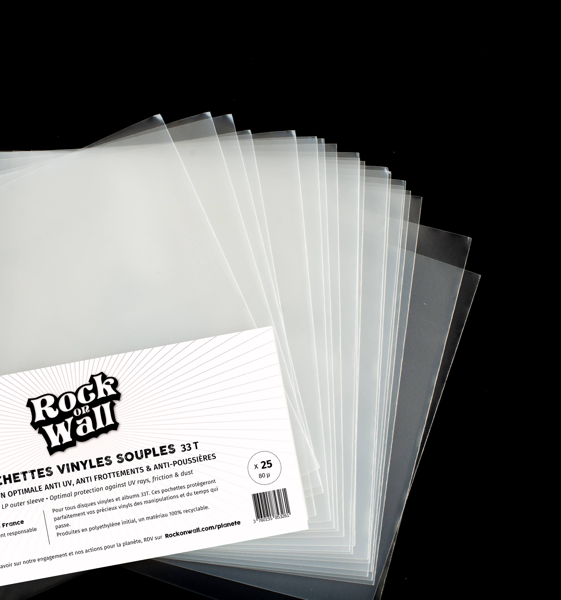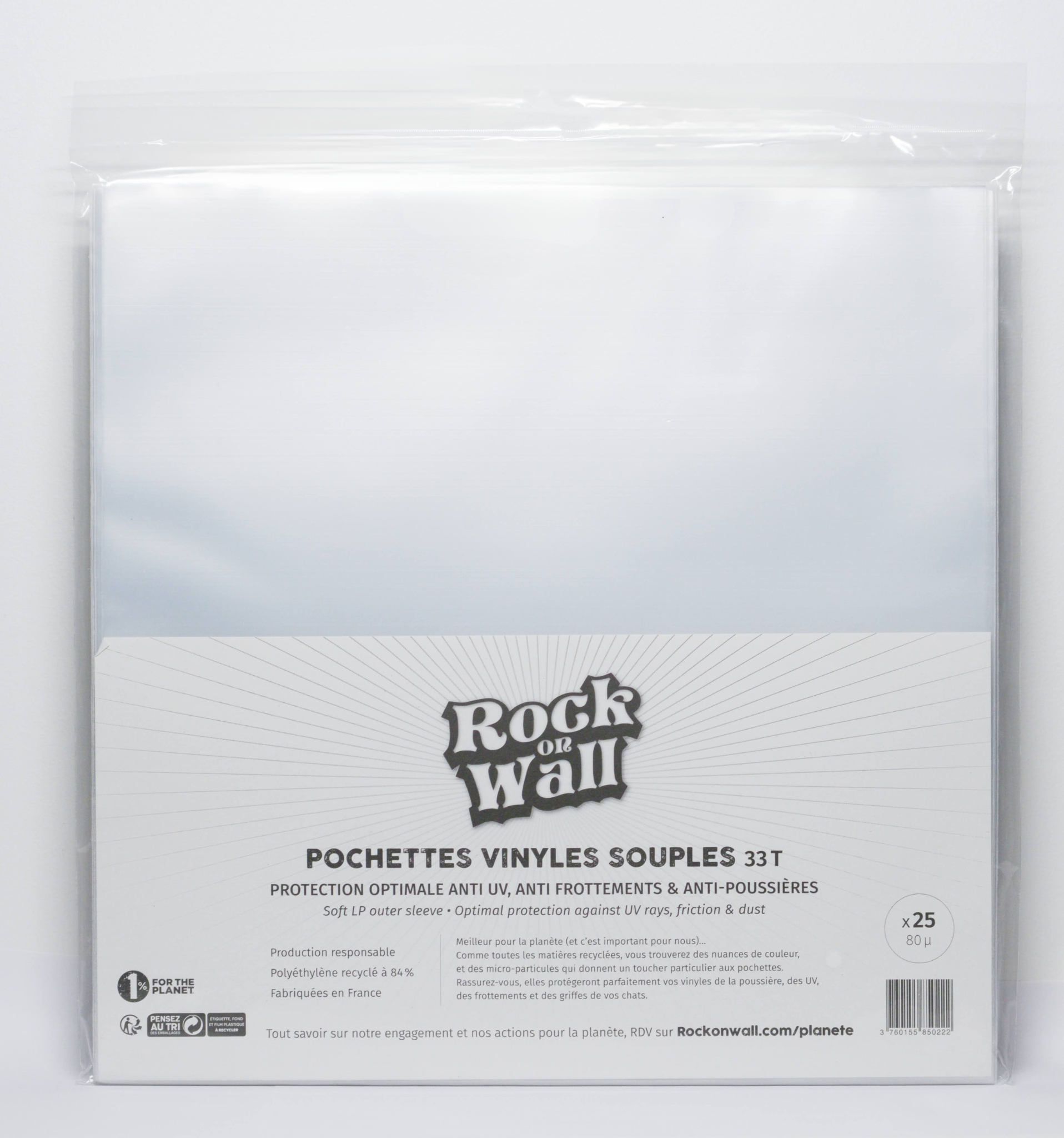 Découvrez notre pack de 25 pochettes souples en polyéthylène recyclé et recyclable de qualité supérieure, 80 microns pour préserver vos précieux disques vinyles 33 tours.
